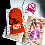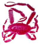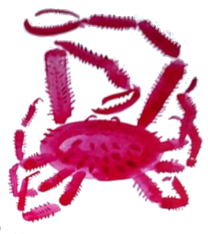 Гэта краб-волат з вострава Кадзьяк. Ён велізарны і можа важыць ажно пятнаццаць кілаграмаў. Ці мае гэта значэнне для гісторыі? Даведаецеся, калі прачытаеце кнігу. Але ў гэтай гісторыі так шмат персанажаў, істот, мясцін — некаторыя з іх важныя, а некаторыя не вельмі, — што мне цяжка было выбраць, хто ж ці што ж будзе ўпрыгожваць адваротны бок вокладкі. Таму я скарысталася самым надзейным і найбольш навуковым спосабам: узяла ілюстрацыі з кнігі, паклала кожную ў яркі канверт і пакінула на сонцы на тры дні, каб паглядзець, які з канвертаў мацней за ўсё выгарыць. Гатова! Так і было вырашана, які малюнак будзе на адваротным баку вокладкі.