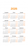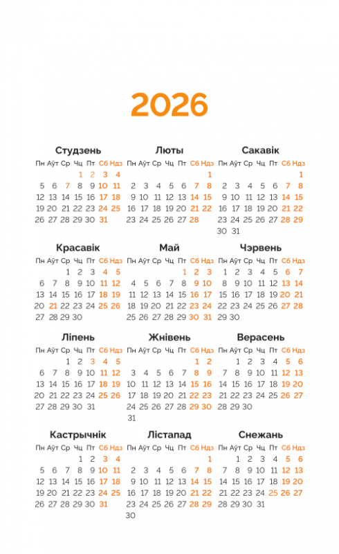 Мой каштоўны 2026. Каляндар перакідны на 2026 год